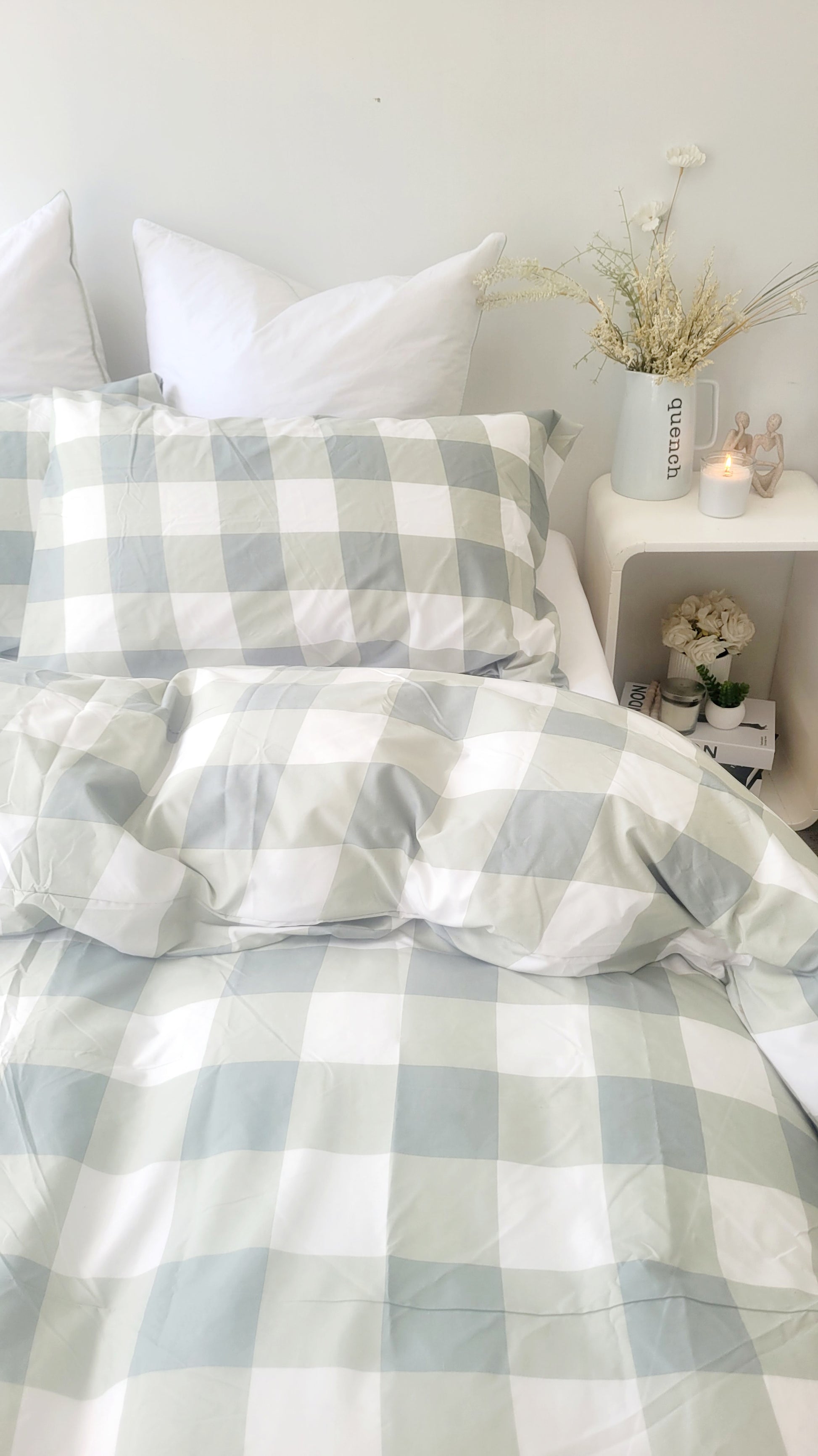Sage Grid-Quilt Cover Set